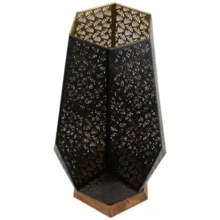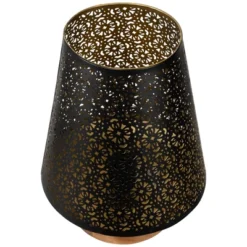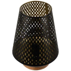 Northlight Laser-Cut Diamond Pattern Iron Table Lamp With Wood Base – 11″ – Black And Gold