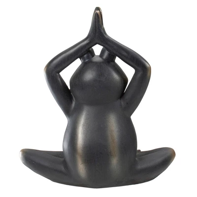 Want to add a little zen to your patio or garden decor? This adorable garden statue features a cute frog in his yoga position becoming one with nature. Features his arms and hands up in prayer. This will make a great addition to your backyard, front yard, garden, porch or to add a little fun to your indoor space.Product Features:Yoga frog outdoor garden statueFeatures frog sitting in a yoga prayer positionStatue is dark gray with gold colored accentsPerfect for patio or gardenRecommended for outdoor useDimensions: 8.75″H x 12″W x 5″DMaterial(s): polyresin