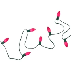 Make your holiday season merry and bright with this stunning holiday light set! These C9 fuchsia pink lights are perfect for adding a pop of pretty pink to your indoor or outdoor decorations. The opaque finish of the bulbs creates a soft, diffused glow that will add a cozy and inviting atmosphere to any space. Whether you’re decorating your holiday tree, decorating an intimate bedroom or sprucing up your patio for a holiday gathering, these lights are sure to make a statement. Product Features:Color: opaque fuchsia pink bulbs / green wireNumber of bulbs on string: 25Bulb size: C9Spacing between each bulb: 12″Lighted length: 24’Total length: 25’6″ lead cord6″ tail cordAdditional Product Features:If one bulb burns out, the rest will stay litContains end-to-end connectors which allow you to connect multiple lighted items together (not to exceed 210 watts)UL certified and approved for indoor or outdoor useWire gauge: 20120 volts, 60 hertz, 1.46 amps, 175 wattsMaterial(s): glass/plastic/wire