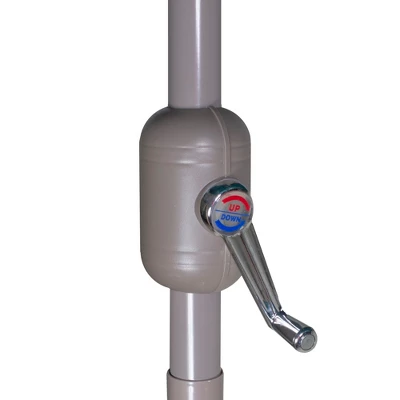 Stay shaded and cool this summer with our moderately sized market umbrella. Ideal for covering a 48-inch or four-person dining set. Features a sturdy, powder-coated aluminum frame with steel ribs, built to last a lifetime. The crank opening and push-button tilt mechanism allows for ease of use. Features:Umbrella shape: octagon Canopy color: sage green Frame and pole color: brownDiameter of open umbrella: 9′ Height: 8′ Pole diameter: 1.5″ (38mm) Lift: hand crank Tilt: push-button8 ribs Material(s): 160 gram polyester canopy/powder-coated aluminum pole/steel ribs Note: Umbrella only, base is not included