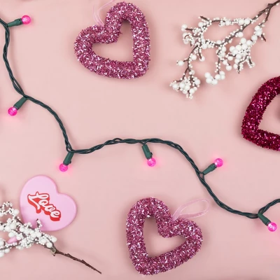 Deck the halls with a rosy glow this holiday season with these pink LED G12 Berry holiday lights. These charming lights bring a touch of warmth and holiday charm to any space. Whether you’re trimming the tree or accenting your home, the soft pink hue adds a delightful twist to your seasonal decor.Product Features:Color: pink bulbs / green wireNumber of bulbs on string: 50Bulb size: G12Spacing between each bulb: 4″Lighted length: 16’Total length: 16.5’5″ lead cord4″ tail cordAdditional Product Features:LED lights use 90% less energy Durable non-glass replaceable bulbsBulbs stay cool to the touch Strand contains a rectifier which eliminates the shimmer and shake in the light setUL certified and approved for indoor or outdoor use If one bulb burns out, the rest will stay litLights are equipped with Lamp Lock feature, which makes them replaceable, interchangeable and keeps them from falling outComes with replacement bulbs and spare fusesContains end-to-end connectors which allows you to connect multiple sets together (not to exceed 210 watts)Wire gauge: 22120 volts, 60 hertz, .00 amps, 2.4 watts