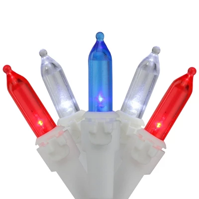 Deck your halls in patriotic flair with our LED mini holiday light set in red, white, and blue. Perfect for adding a festive touch to your holiday decor, these versatile lights aren’t just for holiday. Illuminate your home for Memorial Day, the 4th of July, and Labor Day celebrations with the vibrant colors of the American flag. Whether adorning your tree or enhancing your outdoor space, these energy-efficient LED lights will brighten any occasion with their cheerful glow. Get ready to celebrate in style with our patriotic LED mini light set.Product Features: Color: red, pure white and blue bulbs / white wireNumber of bulbs on string: 50Bulb size: miniBulb type: LEDSpacing between each bulb: 4″Lighted length: 15.5’Total length: 16.75′ 12″ lead cord3″ tail cordAdditional Product Features:LED lights use 90% less energyDurable non-glass replaceable bulbsCool to the touchIf one bulb burns out, the rest will stay litLights are equipped with Lamp Lock feature, which makes them replaceable, interchangeable and keeps them from falling outUL certified and approved for indoor or outdoor useComes with replacement bulbs and spare fuseContains end-to-end connectors which allows you to connect multiple sets together (not to exceed 210 watts)Wire gauge: 22120 volts, 60 hertz, .02 amps, 2.4 wattsMaterial(s): plastic/glass bulbs/wire